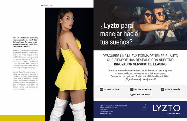 58 | THINK NOW para mí . Sebastián Guarneros , nuestro director , me brindó libertad y guía para dar vida a un personaje tan complejo como Victoria Camacho ”, explica .
