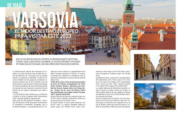 La decimocuarta edición del certamen ha recibido una cifra récord de más de 686.244 votos procedentes de 178 países ( en la pasada edición se registraron 528.069 ). El 48 % de los votos emitidos son de personas residentes en Europa mientras que el 52 % restante viene de otros países , lo que supone el mayor porcentaje de votos procedentes de fuera de Europa desde la creación de esta votación y muestra el fuerte interés de los viajeros extranjeros por viajar a Europa . “ Los 20 destinos más votados ganan el derecho a utilizar el título European Best Destinations 2023 ”, apuntan desde la organización . Entre más de 400 destinos europeos – incluidos 90 destinos EDEN ( European Destinations of Excellence ) sostenibles otorgados por la Comisión Europea –, se preseleccionaron 21 lugares por varios motivos : su popularidad en las redes sociales durante los últimos 12 meses , el aumento de visitantes , la calidad de vida , el desarrollo sostenible y la oferta cultural durante todo el año . El 68 % de los votos a favor de Varsovia proceden de fuera de Polonia , principalmente de Reino Unido , Estados Unidos y Alemania , pero también de Francia , España , Italia y los Países Bajos . “ Incluso sin los votos de Polonia , habría sido galardonada como Mejor Destino Europeo 2023 ”, apuntan desde EBD . Atenas ( Grecia ) se coloca en segundo lugar con 91.023 votos y Maribor ( Eslovenia ) alcanza la tercera posición con 68.641 votos . El cuarto puesto es para Viena ( Austria ), con 55.416 votos . La siguen Cittadella ( Italia ) en quinto lugar con 54.528 votos , Essen ( Ale-
