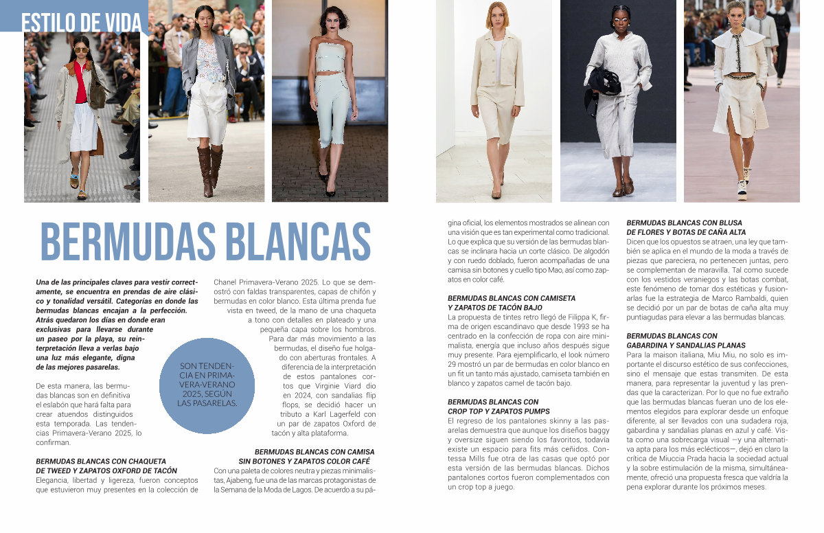 De esta manera, las bermudas blancas son en definitiva el eslabón que hará falta para crear atuendos distinguidos esta temporada. Las tendencias Primavera-Verano 2025, lo confirman.