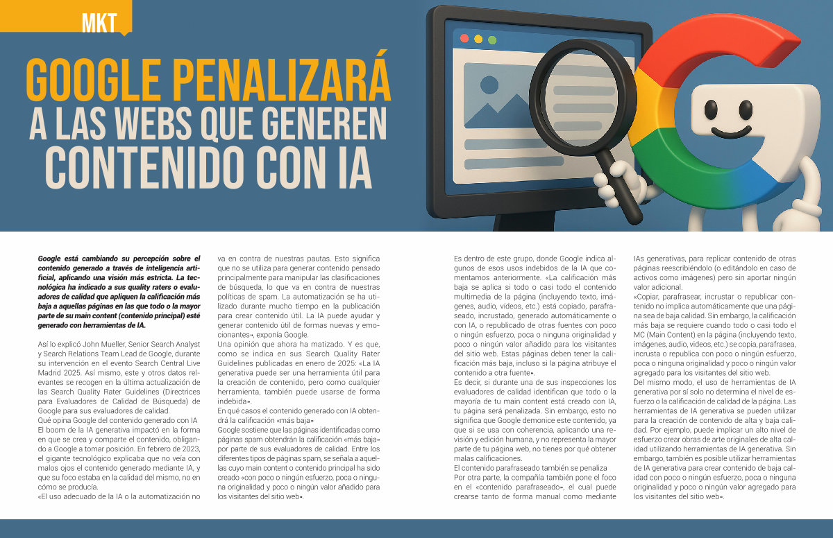 Es dentro de este grupo, donde Google indica algunos de esos usos indebidos de la IA que comentamos anteriormente. « La calificación más baja se aplica si todo o casi todo el contenido multimedia de la página( incluyendo texto, imágenes, audio, vídeos, etc.) está copiado, parafraseado, incrustado, generado automáticamente o con IA, o republicado de otras fuentes con poco o ningún esfuerzo, poca o ninguna originalidad y poco o ningún valor añadido para los visitantes del sitio web. Estas páginas deben tener la calificación más baja, incluso si la página atribuye el contenido a otra fuente ». Es decir, si durante una de sus inspecciones los evaluadores de calidad identifican que todo o la mayoría de tu main content está creado con IA, tu página será penalizada. Sin embargo, esto no significa que Google demonice este contenido, ya que si se usa con coherencia, aplicando una revisión y edición humana, y no representa la mayor parte de tu página web, no tienes por qué obtener malas calificaciones. El contenido parafraseado también se penaliza Por otra parte, la compañía también pone el foco en el « contenido parafraseado », el cual puede crearse tanto de forma manual como mediante