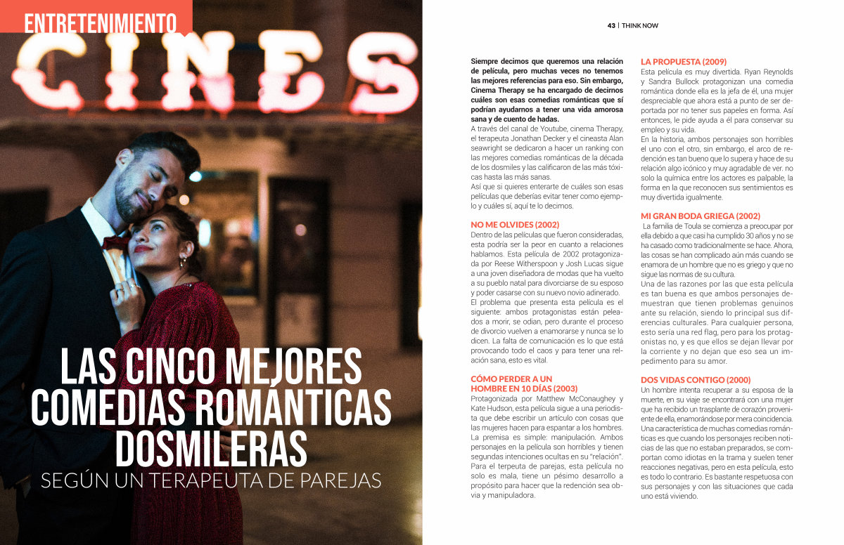 Siempre decimos que queremos una relación de película, pero muchas veces no tenemos las mejores referencias para eso. Sin embargo, Cinema Therapy se ha encargado de decirnos cuáles son esas comedias románticas que sí podrían ayudarnos a tener una vida amorosa sana y de cuento de hadas. A través del canal de Youtube, cinema Therapy, el terapeuta Jonathan Decker y el cineasta Alan seawright se dedicaron a hacer un ranking con las mejores comedias románticas de la década de los dosmiles y las calificaron de las más tóxicas hasta las más sanas. Así que si quieres enterarte de cuáles son esas películas que deberías evitar tener como ejemplo y cuáles sí, aquí te lo decimos.
