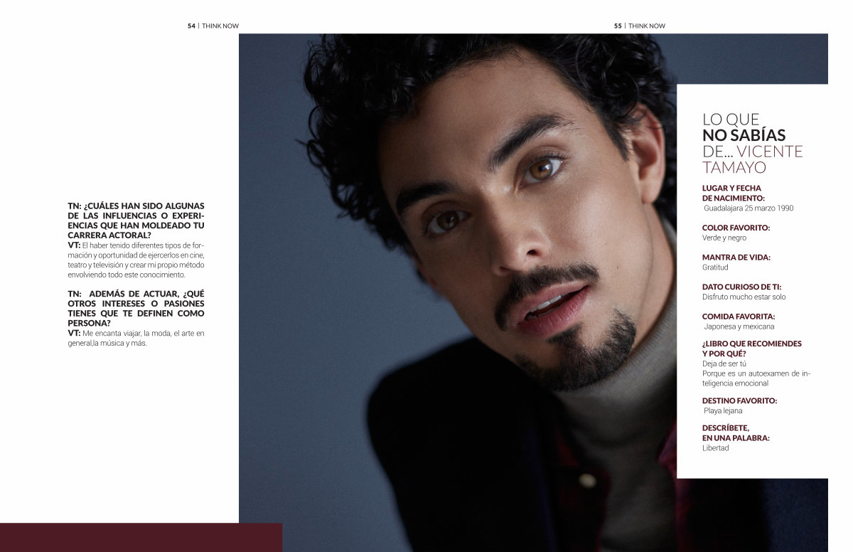 TN: ADEMÁS DE ACTUAR, ¿ QUÉ OTROS INTERESES O PASIONES TIENES QUE TE DEFINEN COMO PERSONA? VT: Me encanta viajar, la moda, el arte en general, la música y más.