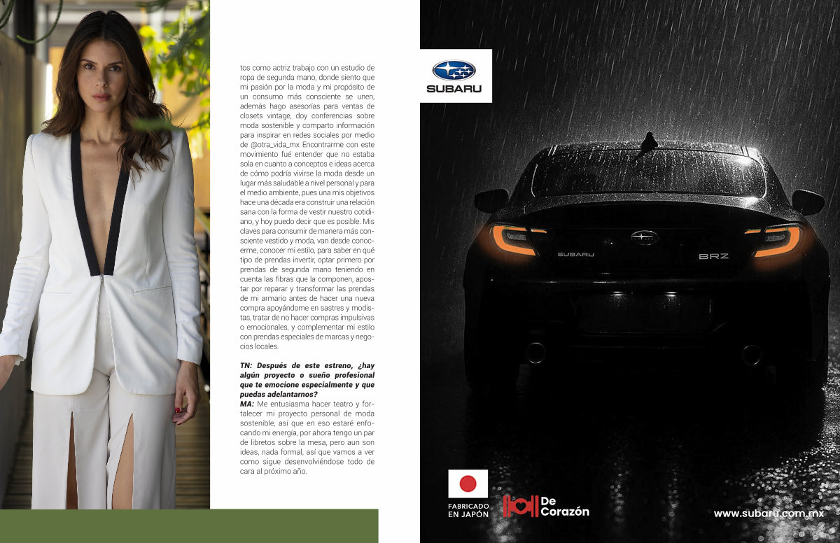 TN: Después de este estreno, ¿ hay algún proyecto o sueño profesional que te emocione especialmente y que puedas adelantarnos? MA: Me entusiasma hacer teatro y fortalecer mi proyecto personal de moda sostenible, así que en eso estaré enfocando mi energía, por ahora tengo un par de libretos sobre la mesa, pero aun son ideas, nada formal, así que vamos a ver como sigue desenvolviéndose todo de cara al próximo año.