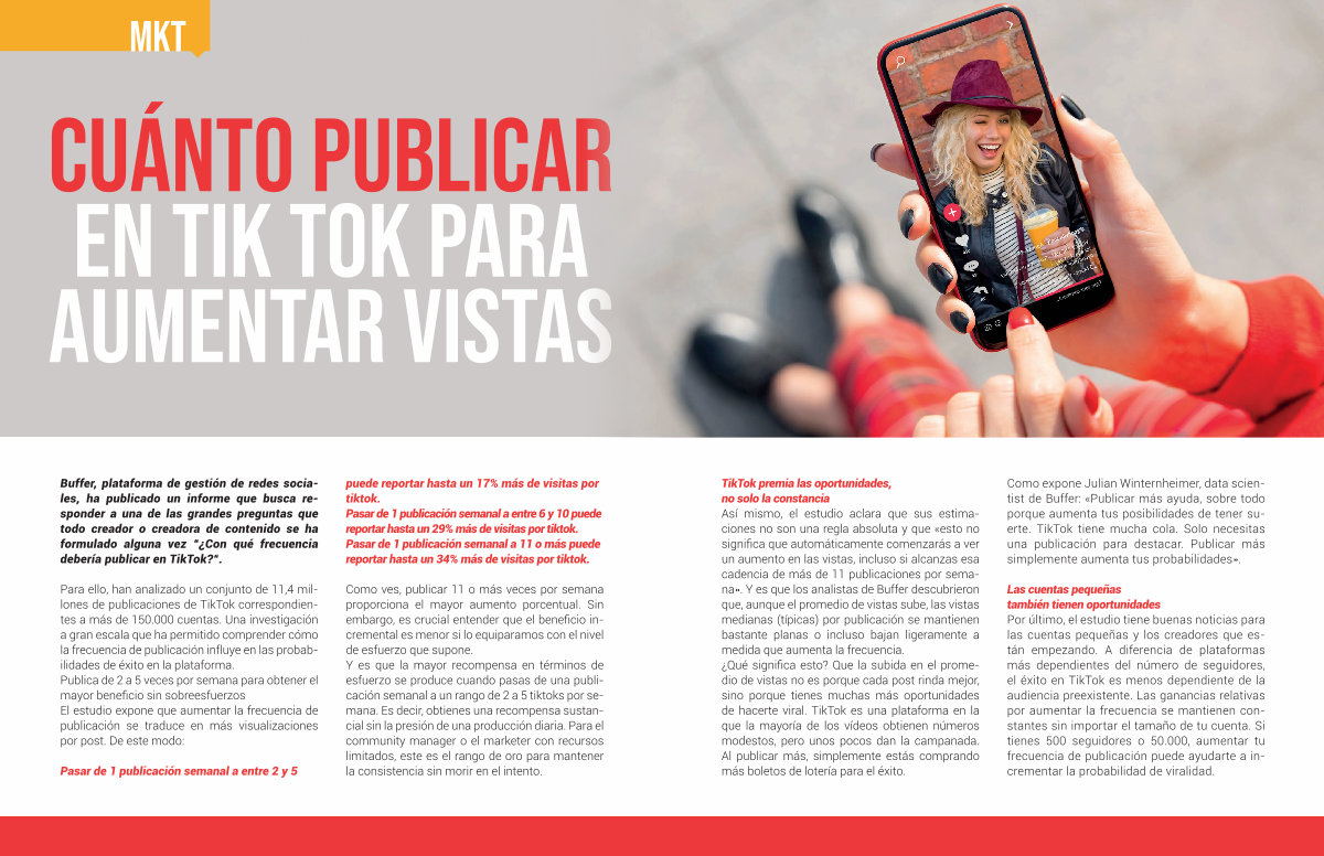 TikTok premia las oportunidades, no solo la constancia Así mismo, el estudio aclara que sus estimaciones no son una regla absoluta y que « esto no significa que automáticamente comenzarás a ver un aumento en las vistas, incluso si alcanzas esa cadencia de más de 11 publicaciones por semana ». Y es que los analistas de Buffer descubrieron que, aunque el promedio de vistas sube, las vistas medianas( típicas) por publicación se mantienen bastante planas o incluso bajan ligeramente a medida que aumenta la frecuencia. ¿ Qué significa esto? Que la subida en el promedio de vistas no es porque cada post rinda mejor, sino porque tienes muchas más oportunidades de hacerte viral. TikTok es una plataforma en la que la mayoría de los vídeos obtienen números modestos, pero unos pocos dan la campanada. Al publicar más, simplemente estás comprando más boletos de lotería para el éxito.