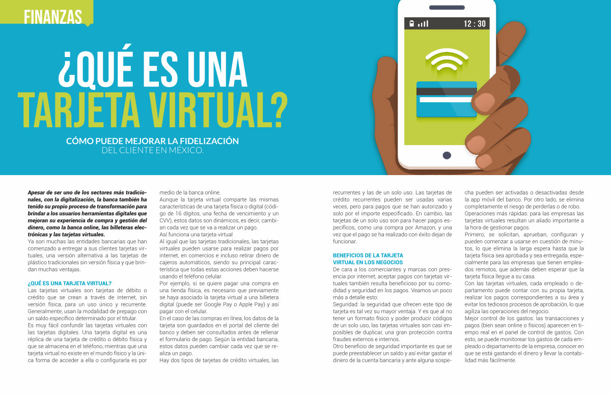 ¿ QUÉ ES UNA TARJETA VIRTUAL? Las tarjetas virtuales son tarjetas de débito o crédito que se crean a través de internet, sin versión física, para un uso único y recurrente. Generalmente, usan la modalidad de prepago con un saldo específico determinado por el titular. Es muy fácil confundir las tarjetas virtuales con las tarjetas digitales. Una tarjeta digital es una réplica de una tarjeta de crédito o débito física y que se almacena en el teléfono, mientras que una tarjeta virtual no existe en el mundo físico y la única forma de acceder a ella o configurarla es por medio de la banca online. Aunque la tarjeta virtual comparte las mismas características de una tarjeta física o digital( código de 16 dígitos, una fecha de vencimiento y un CVV), estos datos son dinámicos, es decir, cambian cada vez que se va a realizar un pago. Así funciona una tarjeta virtual Al igual que las tarjetas tradicionales, las tarjetas virtuales pueden usarse para realizar pagos por internet, en comercios e incluso retirar dinero de cajeros automáticos, siendo su principal característica que todas estas acciones deben hacerse usando el teléfono celular. Por ejemplo, si se quiere pagar una compra en una tienda física, es necesario que previamente se haya asociado la tarjeta virtual a una billetera digital( puede ser Google Pay o Apple Pay) y así pagar con el celular. En el caso de las compras en línea, los datos de la tarjeta son guardados en el portal del cliente del banco y deben ser consultados antes de rellenar el formulario de pago. Según la entidad bancaria, estos datos pueden cambiar cada vez que se realiza un pago. Hay dos tipos de tarjetas de crédito virtuales, las