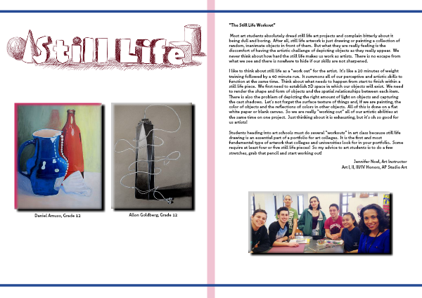 Students heading into art schools must do several “workouts” in art class because still life drawing is an essential part of a portfolio for art colleges. It is the first and most fundamental type of artwork that colleges and universities look for in your portfolio. Some require at least four or five still life pieces! So my advice to art students is to do a few stretches, grab that pencil and start working out!