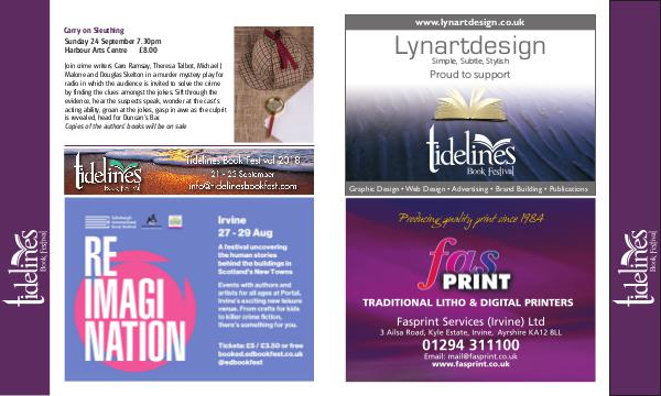 Join crime writers Caro Ramsay, Theresa Talbot, Michael J Malone and Douglas Skelton in a murder mystery play for radio in which the audience is invited to solve the crime by finding the clues amongst the jokes. Sift through the evidence, hear the suspects speak, wonder at the cast’ s acting ability, groan at the jokes, gasp in awe as the culprit is revealed, head for Duncan’ s Bar. Copies of the authors’ books will be on sale