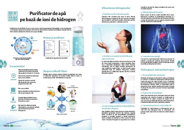 Purificatorul de apă TIENS H-Cup cu micro cip de control generează apă îmbogățită cu ioni de hidrogen,