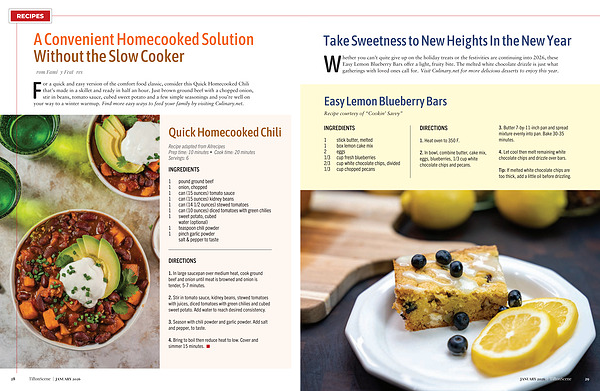 For a quick and easy version of the comfort food classic, consider this Quick Homecooked Chili that’ s made in a skillet and ready in half an hour. Just brown ground beef with a chopped onion, stir in beans, tomato sauce, cubed sweet potato and a few simple seasonings and you’ re well on your way to a winter warmup. Find more easy ways to feed your family by visiting Culinary. net.