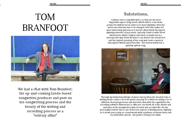 We had a chat with Tom Branfoot; the up-and-coming Leeds-based songwriter, producer and poet on his songwriting process and the beauty of the writing and recording process as a