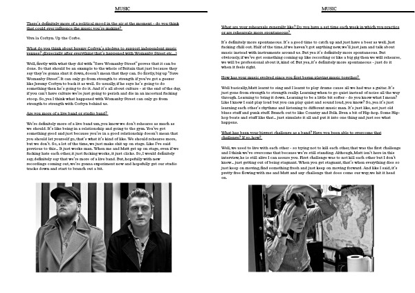 Well basically, Matt learnt to sing and I learnt to play drums cause all we had was a guitar. It’s just gone from strength to strength really. Learning when to go quiet instead of noise all the way through. Learning to bring it down. Learning to be a little bit softer – do you know what I mean? Like I know I said play loud but you can play quiet and sound loud, you know? So, yea it’s just learning each other’s rhythms and listening to different music man. It’s just like, not just old blues stuff and punk stuff. Branch out to like Country and Folk. Even a bit of Hip-hop. Some Hip-hop beats and stuff like that… just simulate it all and put it into one thing and just see what happens.