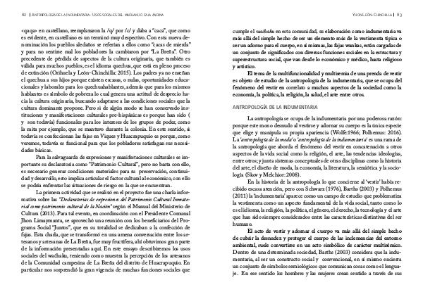 cumple el waćhaku en esta comunidad, su elaboración como indumentaria va