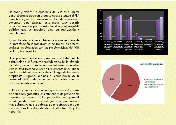 Detener y revertir la epidemia del VIH es el marco general de trabajo y compromiso que se plantea el PEN para los siguientes cinco años. Establece acciones concretas para alcanzar esta meta, cuyo desafío principal son los plazos establecidos y el respaldo político que se requiere para su realización y cumplimiento.