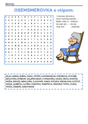 ATLAS, BARAN, BREZA, ČAJKA, CITRÓN, DISKRIMINÁCIA, DREVENICA, DVOJNÍK, DŽUDISTKA, ETNIKUM, GALAPROGRAM, GYMNASTIKA, KAUZA, KEFKA, KVIETOK, MAŠĽA, NÁJAZD, NEMLUVŇA, OLIVOVNÍK, PIANO, POTLESK, PRESILOVKA, ROZTOČ, SADRA, SLNIEČKO, SLUŽBA, SOĽNIČKA, TANEČNICA, TELEGRAF, TORTA, VLÁDA, VNÚČA, ŽANDÁR, ZAROVNANIE