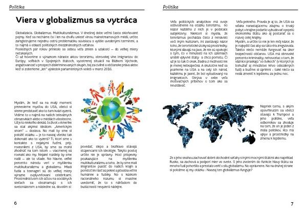 Globalizácia. Globalizmus. Multikulturalizmus. V dnešnej dobe veľmi často skloňované pojmy. Keď sa necháme čo i len na chvíľu uniesť vlnou mainstreamových médií, určite zaregistrujeme nejednu ostrú problematiku súvisiacu s vyššie uvedenými termínmi, a to najmä v oblasti politických medzinárodných vzťahov.