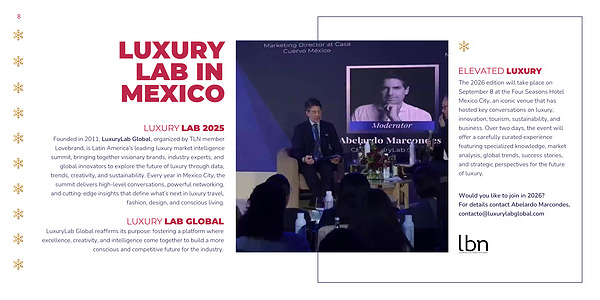 Founded in 2011, LuxuryLab Global, organized by TLN member Lovebrand, is Latin America’s leading luxury market intelligence summit, bringing together visionary brands, industry experts, and global innovators to explore the future of luxury through data, trends, creativity, and sustainability. Every year in Mexico City, the summit delivers high-level conversations, powerful networking, and cutting-edge insights that define what’s next in luxury travel, fashion, design, and conscious living.