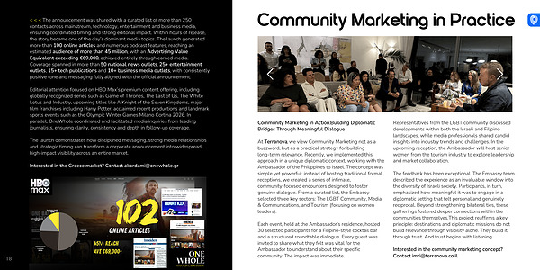 Editorial attention focused on HBO Max’s premium content offering, including globally recognized series such as Game of Thrones, The Last of Us, The White Lotus and Industry, upcoming titles like A Knight of the Seven Kingdoms, major film franchises including Harry Potter, acclaimed recent productions and landmark sports events such as the Olympic Winter Games Milano Cortina 2026. In parallel, OneWhole coordinated and facilitated media inquiries from leading journalists, ensuring clarity, consistency and depth in follow-up coverage.
