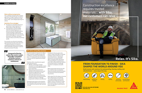 Construction excellence requires trusted materials... with Sika, our customers can relax