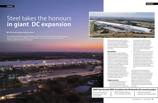 • The Steel Awards 2025 judges took note of the client brief to create the most economical and robust warehousing facility that could facilitate the distribution of a whole range of goods from receiving them to being transported onto retail store shelving – using structural steel and cladding.