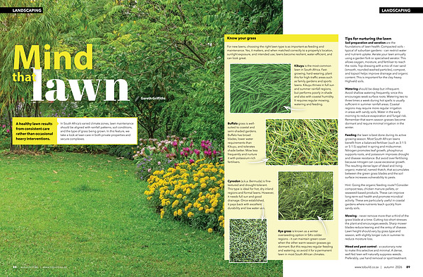 In South Africa’ s varied climate zones, lawn maintenance should be aligned with rainfall patterns, soil conditions, and the type of grass being grown. In this feature, we take a look at lawn care in both private properties and secure complexes.