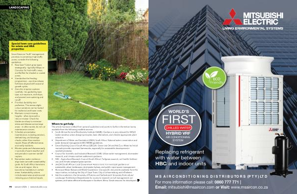 • Remember water resilience – align lawn care with sustainability goals. As South Africa transitions into an arid region, this is becoming mandatory in certain areas. Sustainability actions include water-wise practices and reducing your chemical inputs.