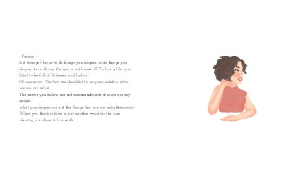- Passion- Is it strange? for us to do things you despise, to do things you despise, to do things the norms not know of? To live a life, you label to be full of“ falseness and failure” Of course not. The fact we shouldn’ t let anyone redefine who we are nor what. The norms you follow are not commandments of mine nor my people, what you despise are just the things that are our enlightenments What you think is false, is just another word for the true identity, we chose to live with.