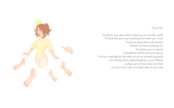 You are so indulged by the label you put on yourself so proudly not noticing all the people laughing on your falseness so please, put all those label, lies down for your mom’ s sake, your dad’ s sake, for your sake