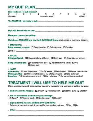 • Sign up for the Alabama Quitline ( 800-QUIT-NOW ): Telephone counseling and , if you qualify , free nicotine patches : n Yes n No