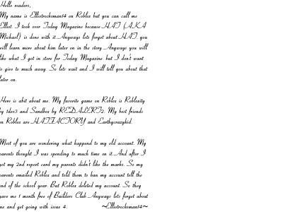 Once there was a robloxian named lisa. Lisa loved going around Roblox. Trying new games or going shopping. But one day Lisa found a game called Sandbox by REDALERT2. So she went there and played it. But when she got there and started building something happend.