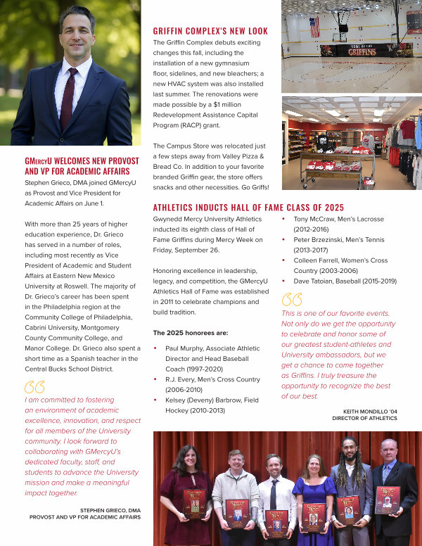 Gwynedd Mercy University Athletics inducted its eighth class of Hall of Fame Griffins during Mercy Week on Friday, September 26.