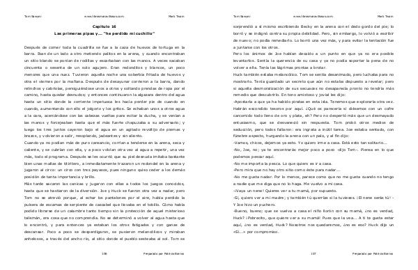hasta que se hastiaron de la diversión. Joe y Huck se fueron otra vez a nadar, pero