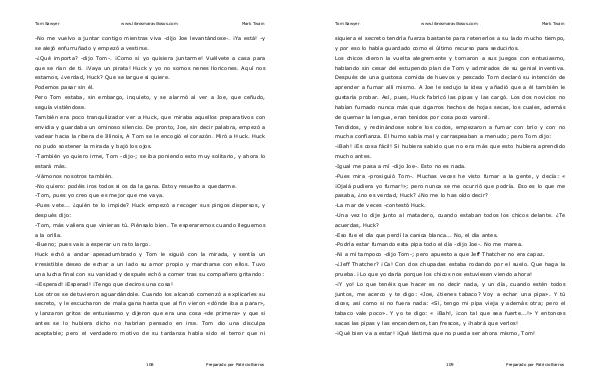 -Pues vete... ¿quién te lo impide? Huck empezó a recoger sus pingos dispersos, y
