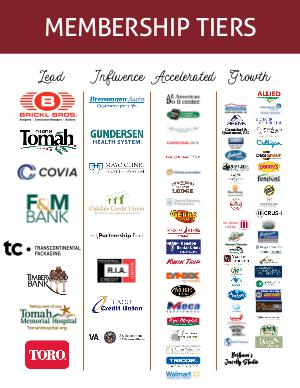 MEMBERSHIP TIERS Lead Influence Accelerated Growth Carmichael & Quartemont, S.C. HO-CHUNK CINEMA Schreier’s Auto Supply Tomah Nursing & Rehab Bertram’s Jewelry Studio