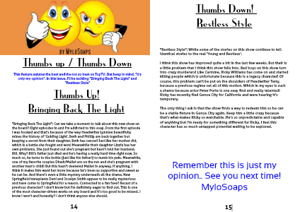 This feature salutes the best and the not so best on TopTV. But keep in mind, "It's only my opinion". In this issue, I'll be tackling "Bringing Back The Light" and "Restless Style"