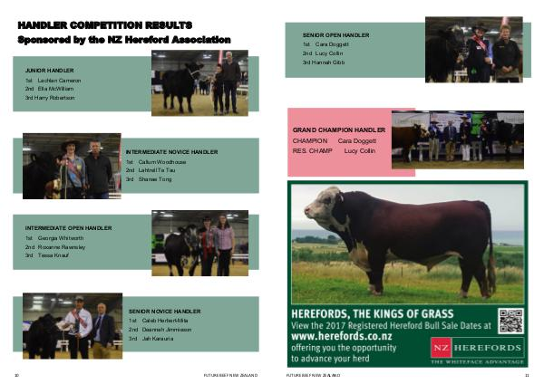 SENIOR OPEN HANDLER 1st Cara Doggett 2nd Lucy Collin 3rd Hannah Gibb GRAND CHAMPION HANDLER CHAMPION Cara Doggett RES. CHAMP FUTURE BEEF NEW ZEALAND Lucy Collin 11