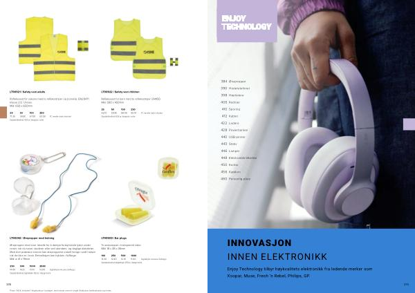 379 INNOVASJON INNEN ELEKTRONIKK Enjoy Technology tilbyr høykvalitets elektronikk fra ledende merker som Xoopar, Muse, Fresh‘ n Rebel, Philips, GP. 384 390 398 406 410 412 422 428 440 443 446 448 450 456 460 Ørepropper Hodetelefoner Høyttalere Radioer Sporing Kabler Ladere Powerbanker USB-pinner Stativ Lamper Elektronikk-tilbehør Kontor Kjøkken Personlig pleie