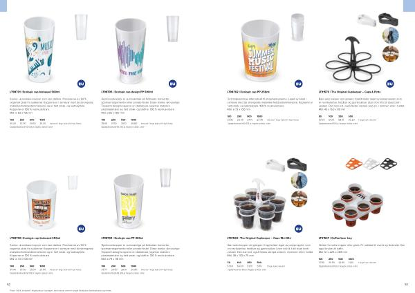 Sterke, uknusbare kopper som kan stables. Produseres av 94 % organisk plast fra sukkerrør. Koppene er i samsvar med de strengeste matsikkerhetsbestemmelsene og er helt smak- og luktnøytrale. Koppene er 100 % resirkulerbare. Mål: ø 73 x 100 mm