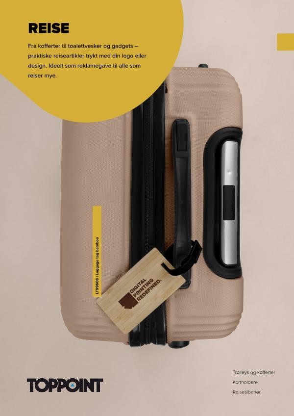 Fra kofferter til toalettvesker og gadgets – praktiske reiseartikler trykt med din logo eller design. Ideelt som reklamegave til alle som reiser mye.