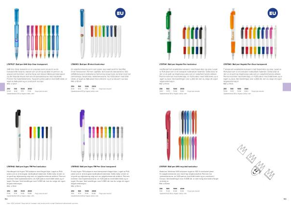 Frosty Ingeo TM kulepenn med transparent farget klips. Laget av PLAplast som er et biologisk nedbrytbart materiale. Dette betyr at den er et godt og miljømessig valg som en salgsfremmende artikkel. Pennen kommer med trykkmekanisme, en X20-patron med blått blekk og er laget i Europa. Ved bestillinger over 5.000 stk. kan du velge din egen fargekombinasjon. Mål: ø 11mm