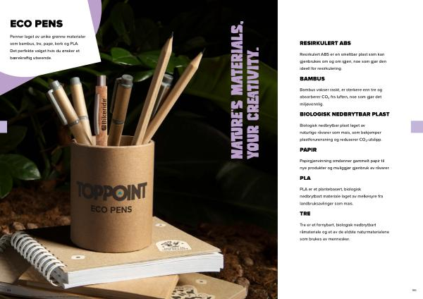 Penner laget av unike grønne materialer som bambus, tre, papir, kork og PLA. Det perfekte valget hvis du ønsker et bærekraftig utseende.
