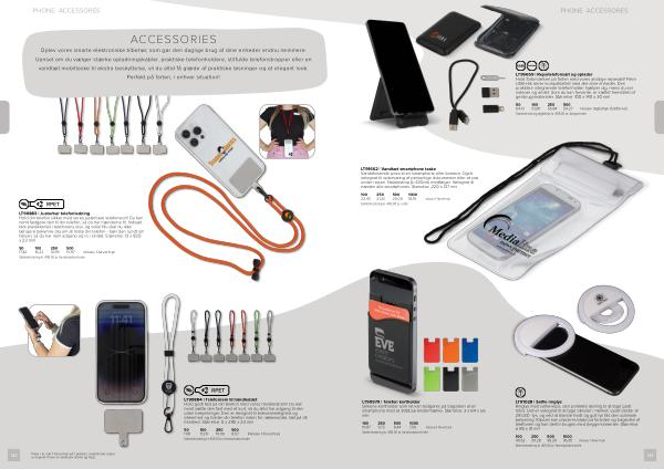 ACCESSORIES Oplev vores smarte elektroniske tilbehør , som gør den daglige brug af dine enheder endnu nemmere . Uanset om du vælger stærke opladningskabler , praktiske telefonholdere , stilfulde telefonstropper eller en vandtæt mobiltaske til ekstra beskyttelse , vil du altid få glæde af praktiske løsninger og et elegant look . Perfekt på farten , i enhver situation !
