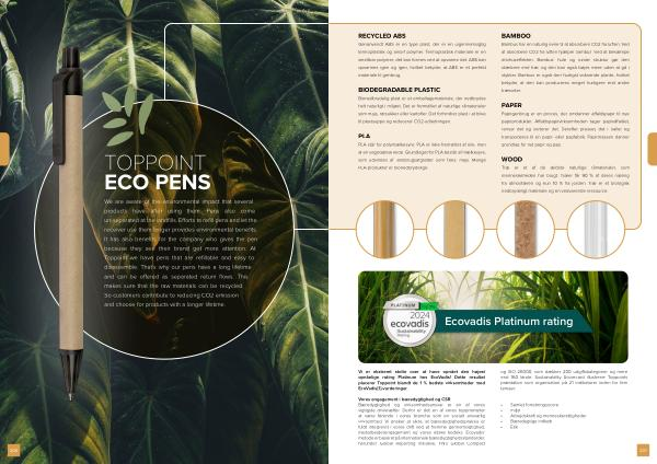 We are aware of the environmental impact that several products have after using them . Pens also come un-separated at the landfills . Efforts to refill pens and let the receiver use them longer provides environmental benefits . It has also benefits for the company who gives the pen because they see their brand get more attention . At Toppoint we have pens that are refillable and easy to disassemble . That ’ s why our pens have a long lifetime and can be offered as separated return flows . This makes sure that the raw materials can be recycled . So customers contribute to reducing CO2 emission and choose for products with a longer lifetime .