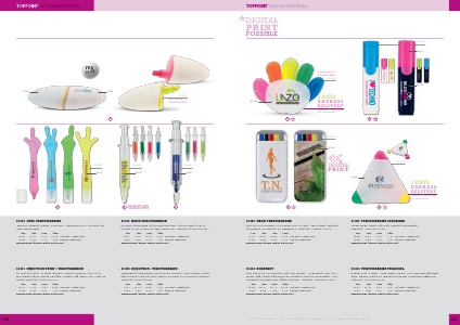 Markør med 3 farger , rosa, grønn, og gul. Stor trykkflate på begge