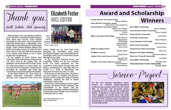 Between hugs, tears, and parting goodbyes, JCLers left NJCL Convention having changed from when they arrived. Some learned gracefully at Ludi events, others learned the right (and wrong) times to hyperbuzz. Some learned how to perform in front of a thousand people, others learned Hellenic History just before the testing session. In order for all of these events to run smoothly and memories to be created, many thanks go out to many people and organizations: