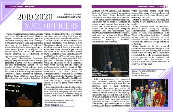 Many thanks go to the prepared candidates, knowledgeable delegates, and invested JCLers for allowing the election season to run smoothly. The JCL’s future is a result of all those who are interested in the election process, so be informed and opinionated, but open-minded. The 2019-2020 NJCL Board looks forward to a great year serving you!