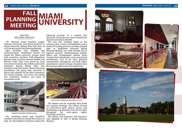 The National Junior Classical League National Committee and Board gathered at Miami University, Oxford, Ohio, from Sept. 18 to 22 for the annual Fall Planning Meeting.