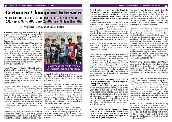 CERTAMEN CHAMPIONS INTERVIEW · Fall 2025 · Torch: U.S.