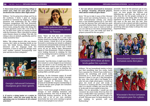 CERTAMEN CHAMPIONS INTERVIEW · Fall 2025 · Torch: U.S.