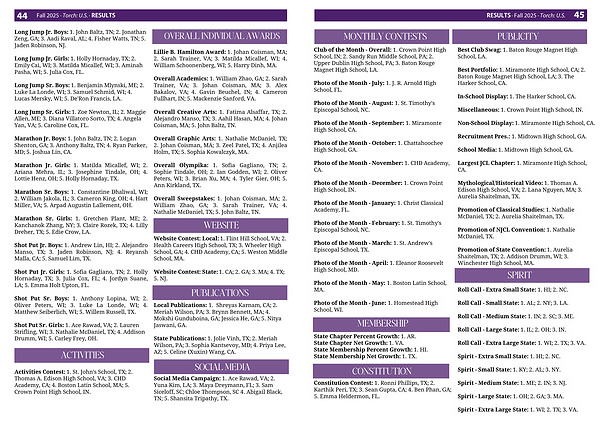 Activities Contest: 1. St. John's School, TX; 2. Thomas A. Edison High School, VA; 3. CHD Academy, CA; 4. Boston Latin School, MA; 5. Crown Point High School, IN.