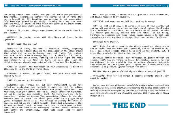 Spring 2026 · Torch: U.S. · PHILOSOPHERS' DEBATE ON EDUCATION